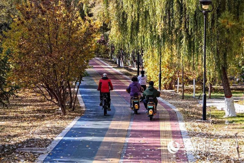 市民骑行在慢行小道,与美景伴行。人民网记者 梁宏鑫摄