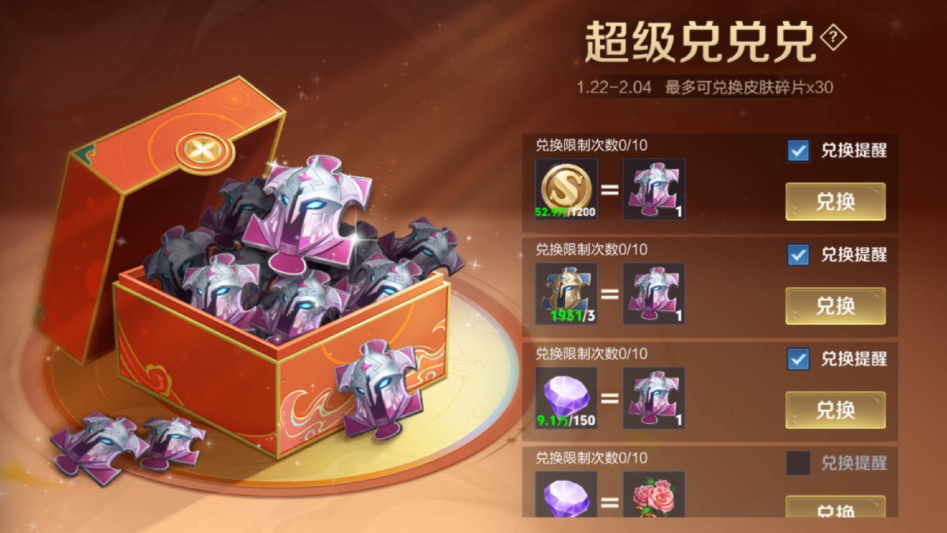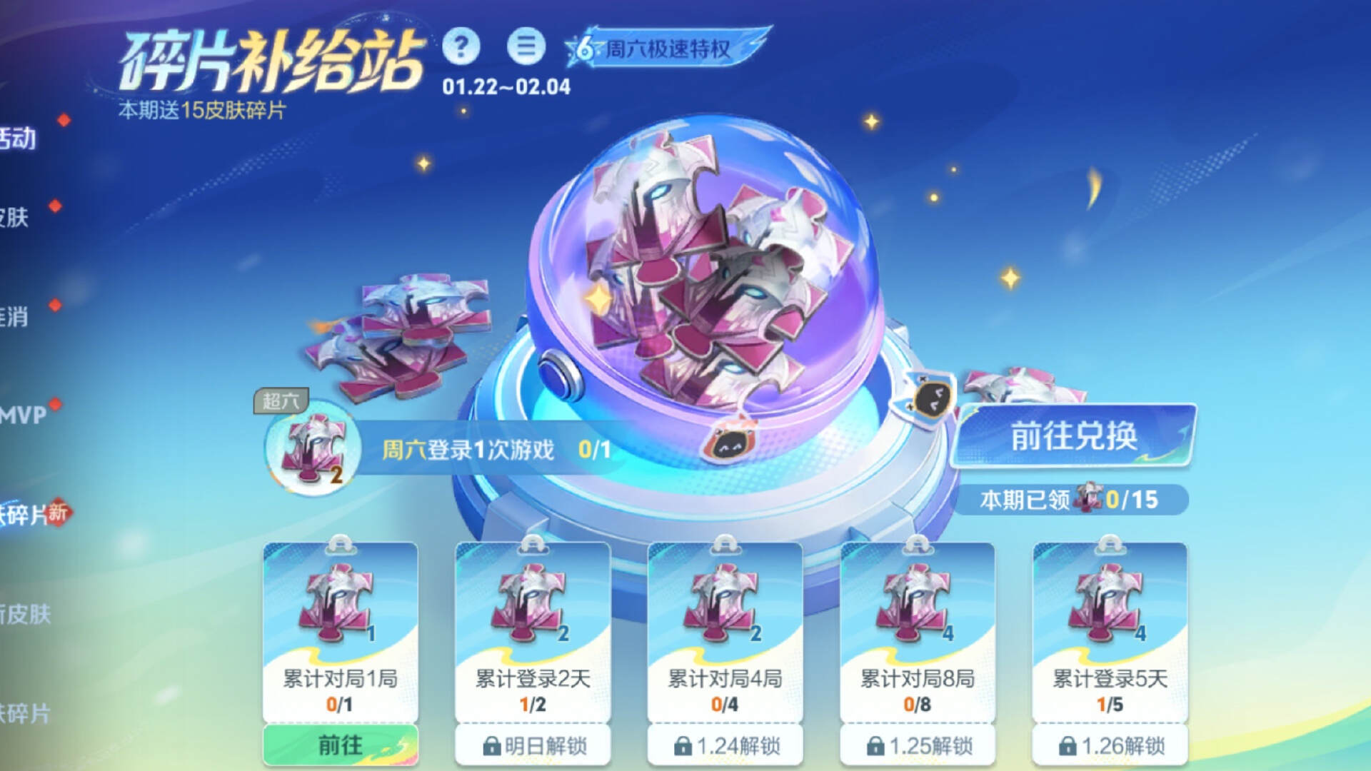 除了超级兑兑兑活动,官方还推出了一个赠送皮肤碎片的活动——碎片补给站。