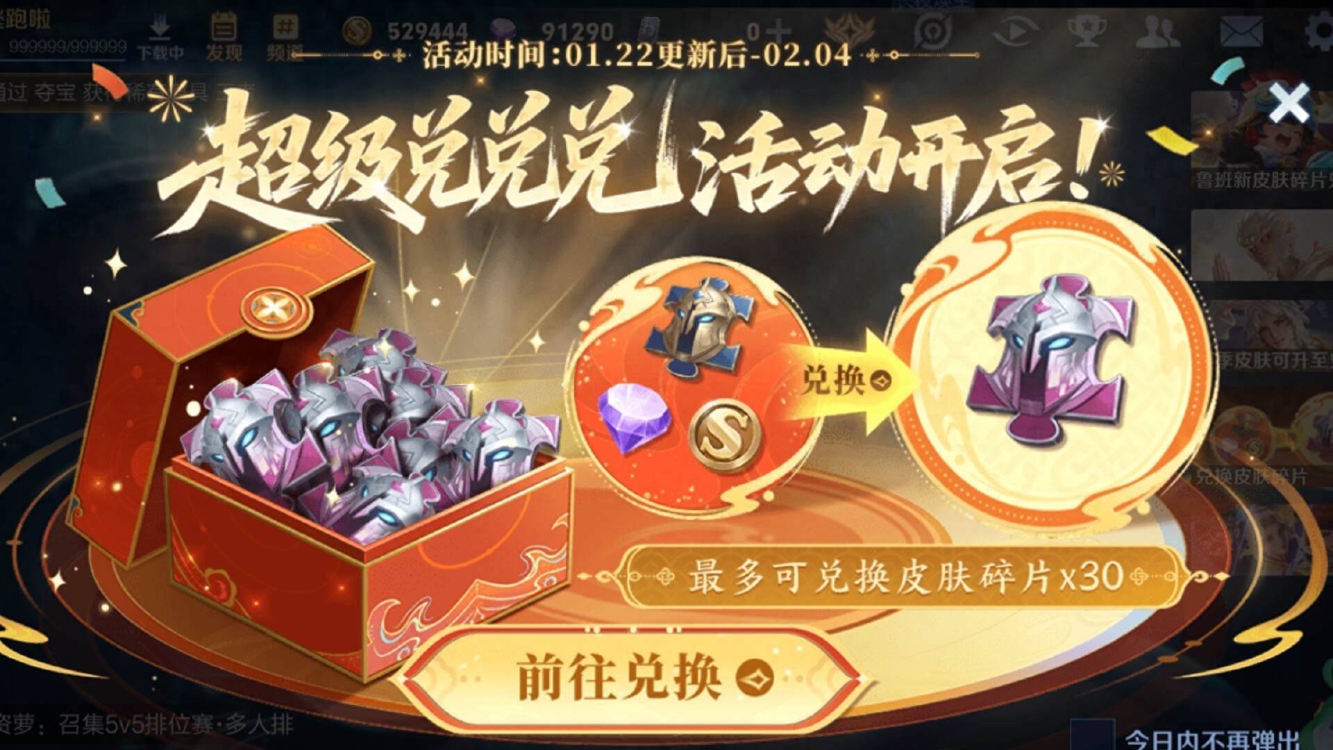 22号更新后,王者荣耀在游戏内推出了全新活动——超级兑兑兑。这是该游戏首次推出此类活动,上线后迅速吸引了众多玩家参与。